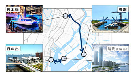 今回、この補助制度を活用する運航事業者と航路が決定した。「日本橋~豊洲」の運航事業会社は観光汽船興業と三井不動産で、今年10月から運航開始する。また、「晴海~日の出」の運航事業会社は東京湾クルージングと野村不動産で、来年春から運航開始する予定。
