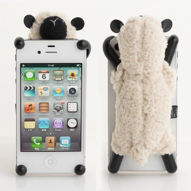 かわいい羊のぬいぐるみが4隅をガッチリ掴んで離さないiPhoneケース。手足のでっぱりのおかげで、操作面を下にして置いても汚れません。