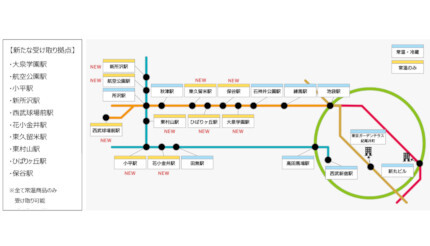 2021年、2022年に実施した実証実験に続いて、今回は西武鉄道沿線で拠点を拡大する。9月上旬から追加する新たな受け取り拠点は、大泉学園駅、航空公園駅、小平駅、新所沢駅、西武球場前駅、花小金井駅、東久留米駅、東村山駅、ひばりヶ丘駅、保谷駅で、いずれも常温商品のみ。
