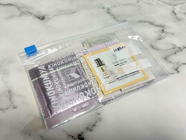 サウナに行く時や旅行などの際に使うかも…とたくさん置いてある化粧品サンプルは、筆者はこれまでは大きなジッパーバッグにガサッと入れてズボラに保管していました。