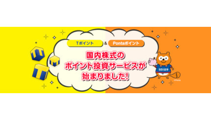 SBI証券は、TポイントとPontaポイントをそれぞれ1ポイント=1円として国内株式(現物)の買付代金に充当できる「国内株式(現物)ポイント投資」サービスを8月26日から開始した。