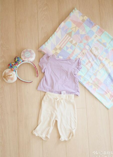 パステルな色味のパープル、ブルー、ピンクのアイテムを使えば、カラフルな外観も可愛い「イッツ・ア・スモールワールド」のバウンドが完成。