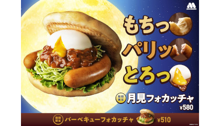 モスバーガーを展開するモスフードサービスは9月13日~11月中旬までの期間限定で、「月見フォカッチャ」と「バーベキューフォカッチャ」を発売する。前者は580円、後者は510円。