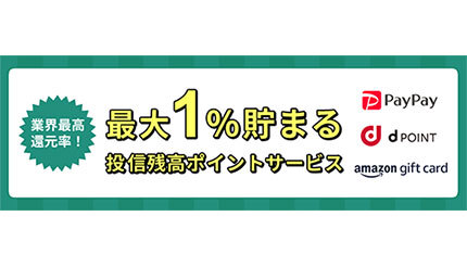 松井証券は11月1日に、投資信託では業界最高のポイント還元率となる新サービス「最大1%貯まる投信残高ポイントサービス」の開始を予定している。