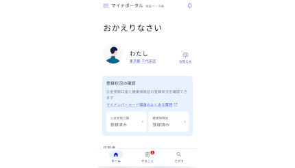 実証ベータ版では、公金受取口座の登録や健康保険証との紐付け状況を簡単に確認できるように見直したほか、医療費の記録の簡単な振り返りや、居住自治体の手続きがわかるようになっている。
