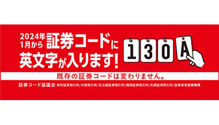 証券コード協議会は、2024年1月から新規に付番する証券コードに英文字を組み入れる「証券コード英文字組入れ」に関する特設ページを開設し、変更までの経緯や概要を説明している。