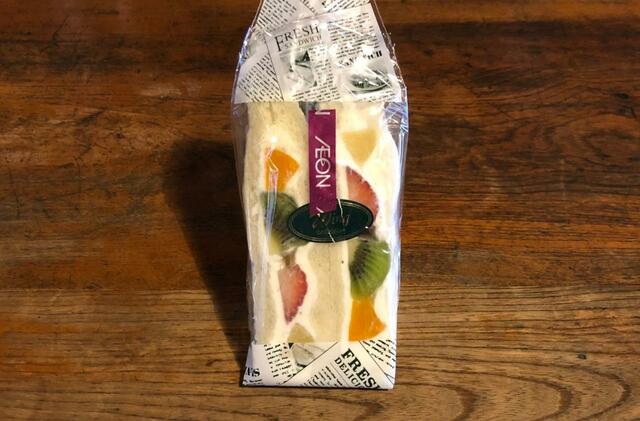 イオンでは、シロップにつけたマンゴー、みかん、黄桃、パイナップルをホイップクリームとりんごジャムでサンドしたフルーツサンドを販売中。