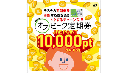 JR東日本、オフピーク定期券の購入で最大1万ポイントのJRE POINTが抽選で当たるキャンペーン