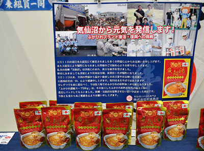 宮城・気仙沼から石渡商店の「ふかひれ濃縮スープ」。フカヒレ水揚げ日本一の気仙沼を象徴する特産品です。加工ラインが復旧してこうして販売を再開しました。ブースでは気仙沼の別の水産会社の方が売り場に立っていました。町が団結して復興に取り組んでいるのです。ネットでも買えます。濃厚で贅沢な逸品を家庭でぜひご賞味を。