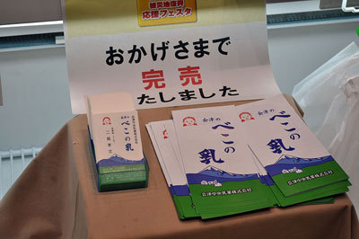 3日間開催の真ん中の日の取材でしたが、品切れの店が数多くあり、復興支援の機運は損なわれていないと少し安心しました。