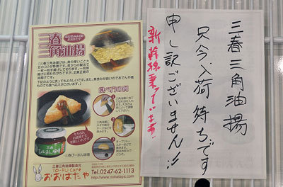 福島・三春の三角油揚は残念ながら売り切れ。食べたかったなぁ。