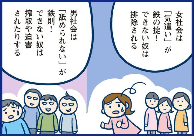 女性と男性は生まれた時から違う…というわけじゃなくて、コミュニティでそれぞれの「ルール」に揉まれて価値観を形成するんじゃないかと思ったのです。