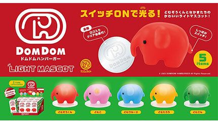 ケンエレファントは9月下旬に、ドムドムフードサービスが運営する「ドムドムハンバーガー」から許諾を受けて開発した「ドムドムハンバーガー ライトマスコット」を発売する。ラインアップは、どむぞうくん、どむこ、どむクルーズ、どむたろう、どむさんの5種類。価格は、カプセルトイが1個500円、ブラインドBOXが1個550円。ケンエレファントの公式オンラインショップ「ケンエレストア」では、カプセルトイタイプの予約を受け付けている。