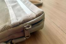 アクアブルーはグレーと水色の中間のような色味です。紐も同じカラーでクール!