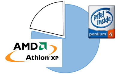 次に、シリーズ別の販売数量構成比では、Pentium-4がほぼ半数の48.1%、Celeronが28.7%、Athlon XPが20.6%、この3シリーズで9割以上を占めていた。IntelのCPUは現在Core iシリーズがハイエンドモデル、PentiumやCeleronはエントリーモデルという立ち位置になっている。しかし03年当時、Pentiumはハイエンドモデルだった。