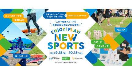 三井不動産商業マネジメントは9月15日~10月15日の期間、スポーツの秋にちなんだ「ENJOY!PLAY!NEW SPORTS」フェアを、三井ショッピングパーク ららぽーと・ラゾーナと、三井アウトレットパークの全国30施設で開催する。