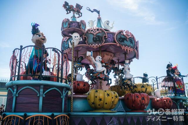 ちょっと注目していただきたいのが、フロートの中心部でパンプキン型のティーカップがくるくる回っているところ。