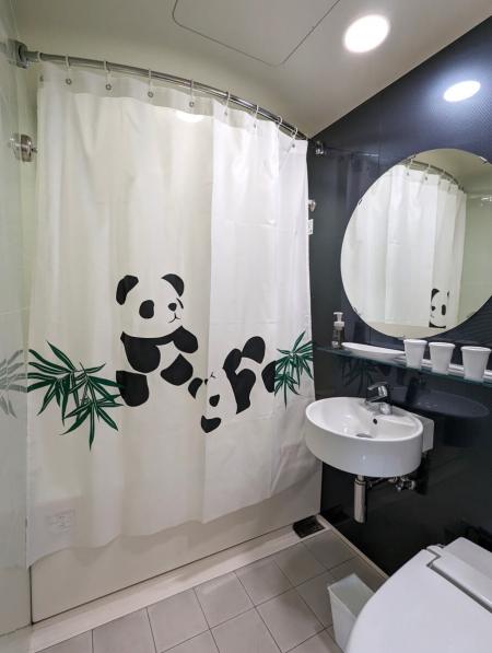 パンダルーム®は、ユニットバスもパンダデザインになっています。寝転がるパンダに癒やされます♪