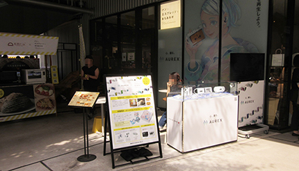 コラボレーションカフェ入り口で東芝のAUREX製品を展示