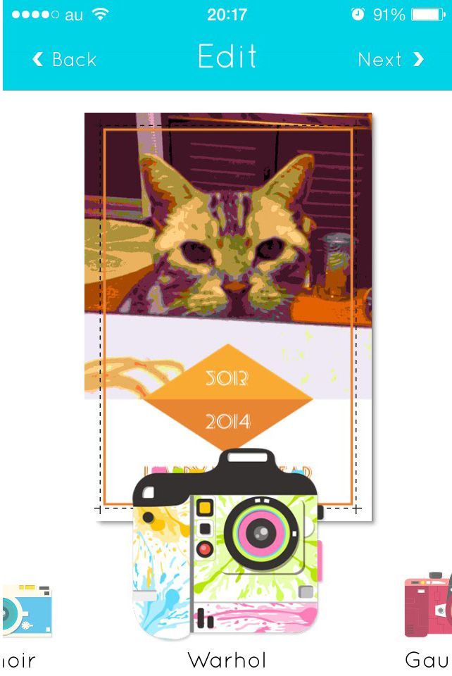 デザイナーが作成したオシャレなフレームから好みのもの選択。写真を選んだら、画像に効果をかけることができます。