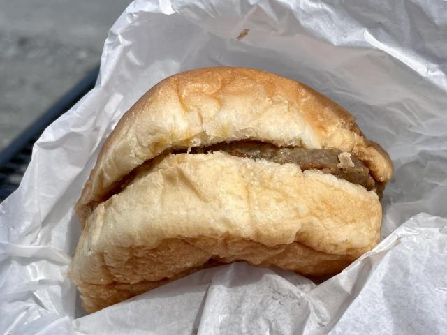 【中古タイヤ市場 相模原店】 熱したため、バンズがしわだらけなのがこのハンバーガーの特徴
