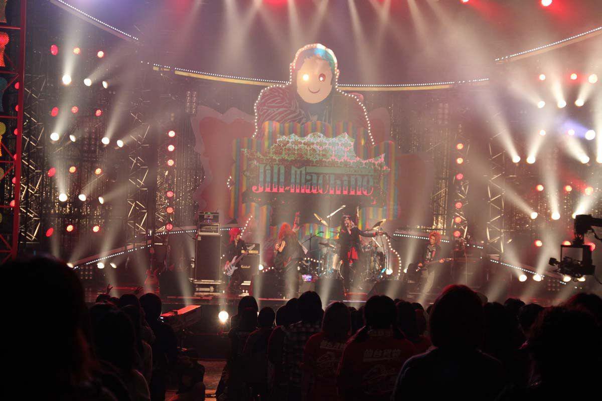 『じんましーんのテーマ2』からはじまり、Jin-Machineらしくない(?)正統派ビジュアル系ソング『Suffer』、NHK的に大丈夫なのか不安要素の多い小芝居も含めた『ビジュアル戦隊バンド麺』、今年日本シリーズ優勝をおさめた地元楽天イーグルスの(勝手に作った)応援歌『RA・RA・RA 楽園イーグルス』、『環境デストロイ』、そしてがんばっている人への応援ソングである『さよならアキラメロン』を披露。