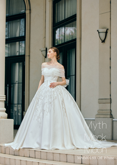 デコルテを優しく包み、印象的な後ろ姿を作り出してくれるソフトチュールのケープで、優美な雰囲気へとチェンジ。