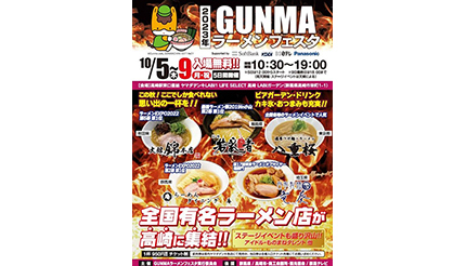 「GUNMAラーメンフェスタ2023」は、全国各地で開催されたラーメンイベントなどで人気の有名店が集結するラーメンフェスタで、群馬県では初の開催となる。