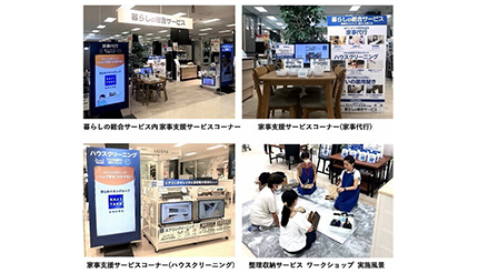 これまでも同社は、イオン店舗内にてハウスクリーニング、保管付き衣類・布団クリーニングに関するサービス(商品)を取り扱っていたが、「家事代行(掃除・料理・整理整頓)サービスの販売」を加えた「家事支援サービスコーナー」の開設は、今回が初となる。