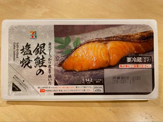 朝食の定番である銀鮭の塩焼きです。価格は375円で1切れあたり142kcal。