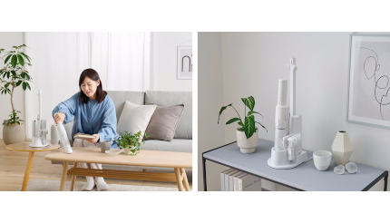 スティッククリーナー時の重さは約800gと、同社のスティッククリーナーとしては最軽量となり、長時間の使用でも疲れにくく手軽に掃除をすることが可能で、スタンドの接地面積はB5サイズ程度で本体とアタッチメントを全て収納できるので、置き場所を選ばないコンパクトな収納を実現している。