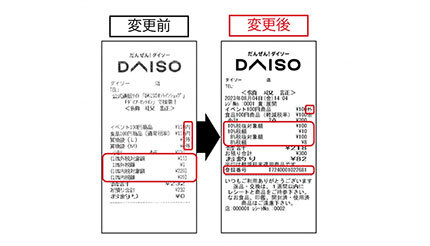 大創産業は、2023年10月1日から開始される「インボイス制度(適格請求書等保存方式)」の導入にあわせ、9月27日発行のレシート・領収証からインボイス(適格簡易請求書)として利用可能になると案内している。