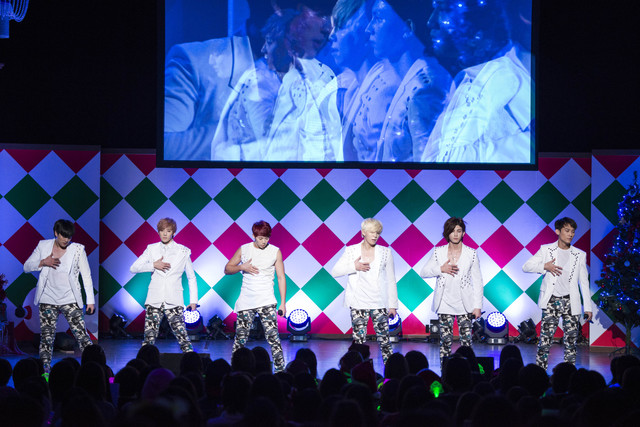 その他、“U-KISSサンタ”は、香水セットやマフラー、サングラスなど、メンバーがそれぞれが選んで購入した贈り物に加え、その場でメッセージ・カードを書いてプレゼントするという“おもてなし”も。さらに、AJのムチャ振りに応え、スヒョンがEXILEの『We Will~あの場所で~』をアカペラで披露するなど、会場は大いに湧いた。