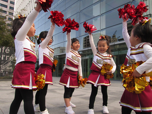 東京マラソンの恒例ともなった応援イベントですが、昨年は約5,500名もの人々が参加し、ランナーを元気づけるために様々な演出をしてくれました。吹奏楽の演奏や合唱、チアリーディング、フラダンスをはじめ、他にも太鼓やお囃子、舞といった伝統芸能まで見ることができます。