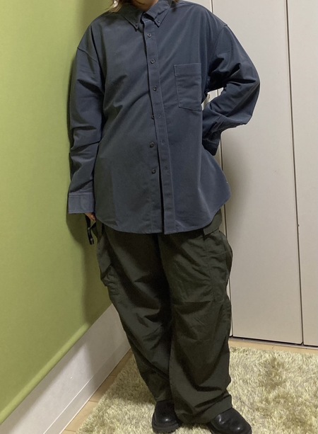 最後にダークグレーのシャツを合わせてみました。シャツもオーバーサイズが合います。