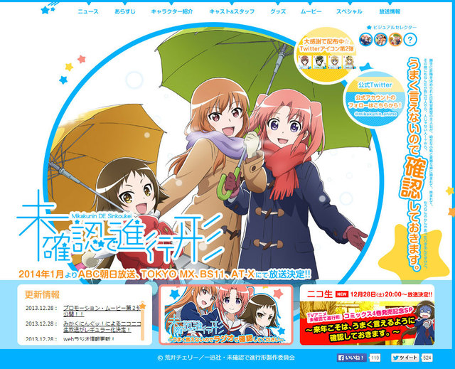 『未確認で進行形』(制作/動画工房 1月8日26:13~ ABCなど)