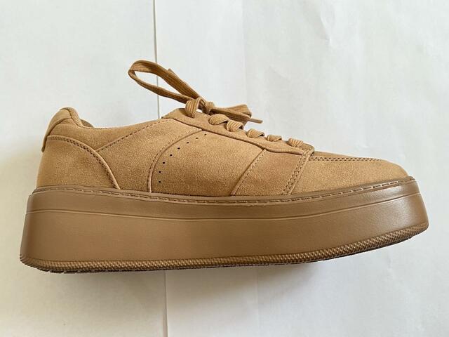 マットな質感の厚底スニーカーで、秋冬のおしゃれにぴったり!