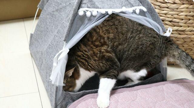 そこで数日後、飼い主はペットテントの中に「ちゅ~る」を召喚。