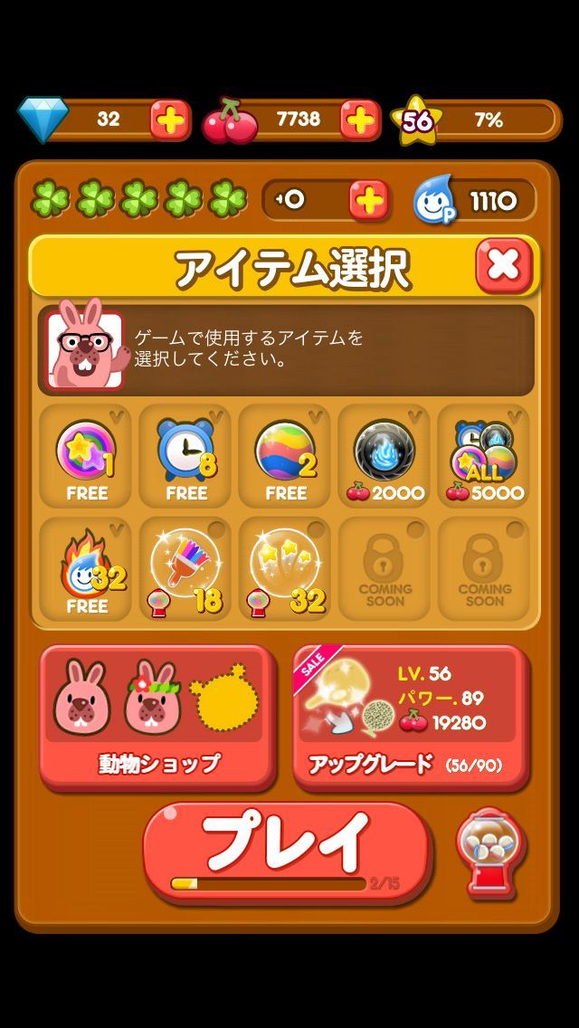 その他は似たり寄ったりですが、「I'M A PAINTER(ブロックの色をチェンジして同じ色をつなげやすくしてくれる)」や「ゲームプレイ時間5秒追加」「爆弾をすべてスーパー爆弾に変化」あたりはそれなりに使えると思います。