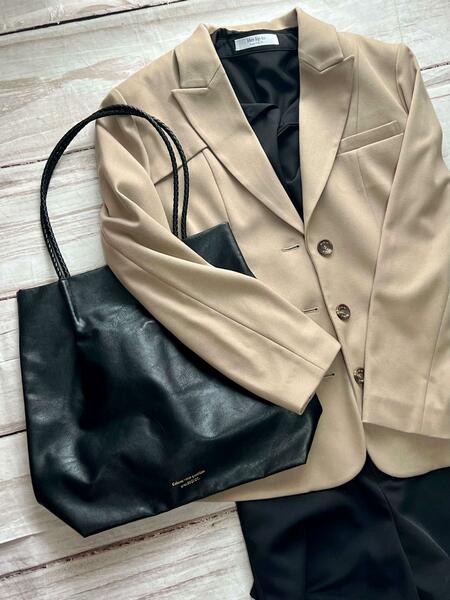 「A4が入る縦長トートバッグ=お仕事バッグ」に見えやすいですが、ハンドルのブレードデザインがアクセントになっているため、カジュアルファッションに合わせてもかわいいのがうれしいポイント。