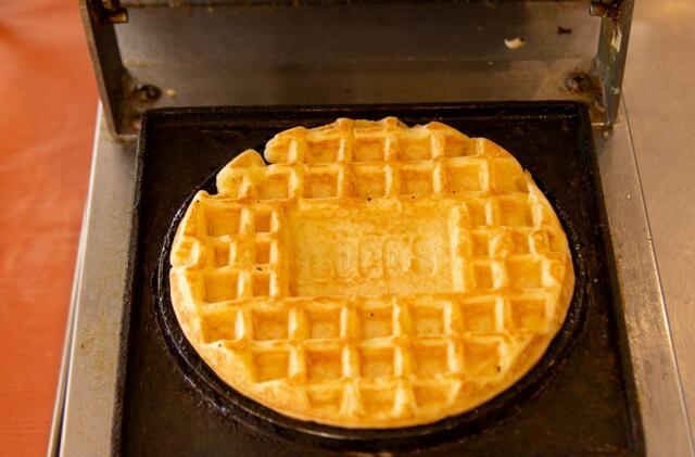 焼きたてパンだけでなく、焼きたてワッフルも選べるココスの朝食バイキング。ワッフルは自分で生地をすくって専用のトースターで焼き上げます。