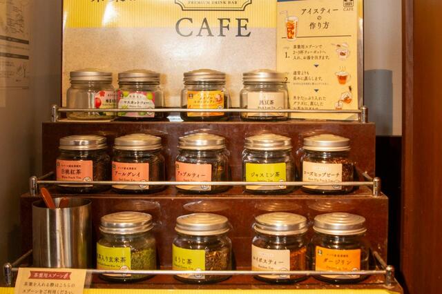 フレーバーティーの種類も豊富で自分の好きな茶葉を選んで淹れたてを飲むことができます。ノンカフェインの茶葉も多いのが嬉しいですね。