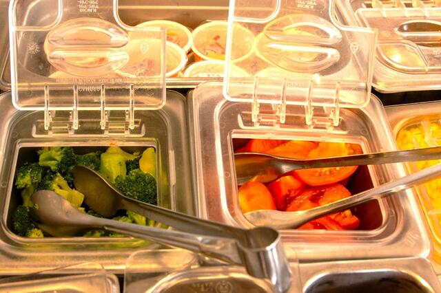 サラダメニューはフレッシュなトマトやブロッコリーをはじめとしてマカロニや海藻サラダなどなど、種類豊富。朝からたっぷり野菜を取れるのが嬉しいですね。