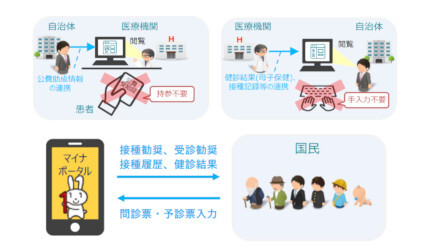 具体的なデジタル化の取り組みは、医療費助成では、マイナンバーカードを受給者証として利用し、医療機関で受診できるようにする。予防接種・母子保健(健診)では、事前に予診票や問診票をスマートフォンなどで入力し、マイナンバーカードを接種券・受診券として利用できるようにする。また、マイナポータルから、接種勧奨・受診勧奨を行い、接種・健診忘れを防ぐとともに、接種履歴や健診結果がリアルタイムでにマイナポータル上で確認できるようにする。