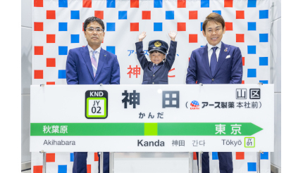 JR神田駅の駅名標が2028年9月30日まで「JR神田駅(アース製薬本社前)」に。発車メロディも変更