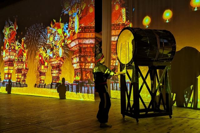 ショーで表現されるのは、青森の四大祭り。7月末~8月上旬にかけて各地で行われる「五所川原立佞武多」、「弘前ねぷたまつり」、「八戸三社大祭」、「青森ねぶた祭」のそれぞれを、映像や照明を使って特徴を際立たせながらドラマチックに表現しています。
