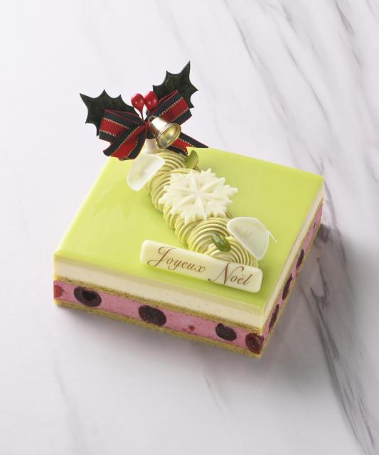 濃厚なピスタチオクリームにキルシュの効いたバニラムース、甘酸っぱく香り豊かなグリオットチェリーがアクセントになった、濃厚でコクのある味わいに仕上げ、お酒を効かせた大人のクリスマスケーキです。