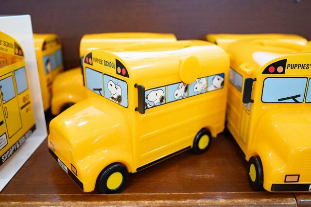 スヌーピーたちが乗ったスクールばすをそのまま容器にしたお菓子も。