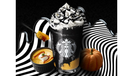 スターバックス コーヒー ジャパンは、ハロウィンのいたずらで真っ黒に覆われたというコンセプトの「Boooooフラペチーノ」を、10月11~31日の期間限定で全国のスターバックス(一部除く)で販売する。