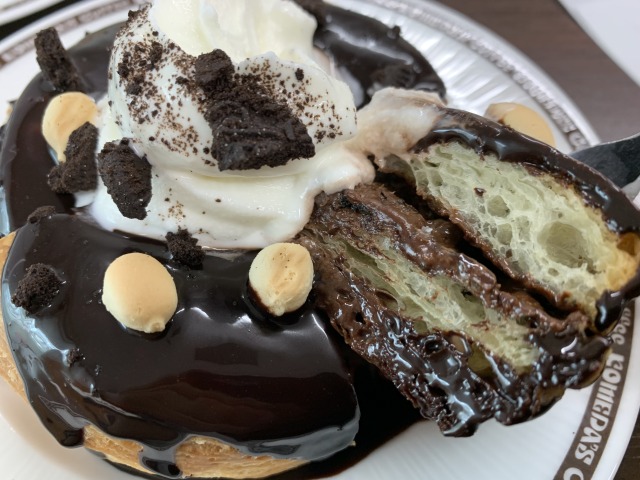 昨年好評だった「シロノワール 黒いブラックサンダー」は、デニッシュにブラックサンダースプレットをサンドし、たっぷりとブラックサンダーソースをかけました。